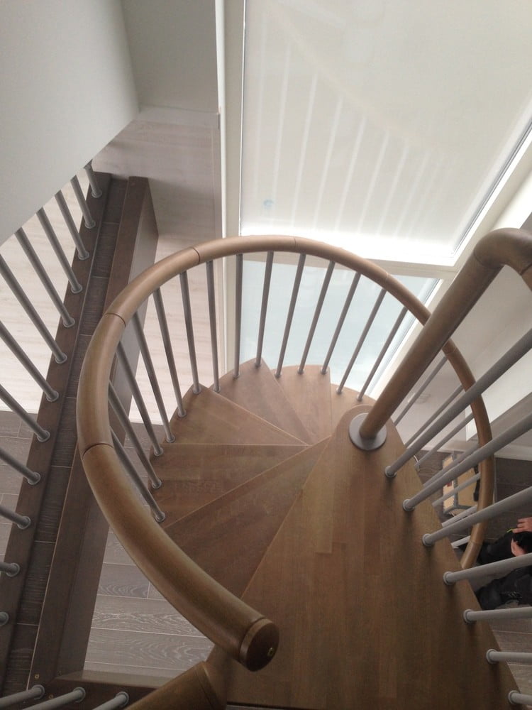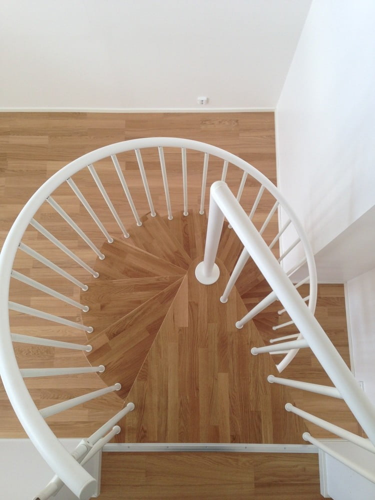 Pure wood is a spiral staircase for you who need to save space. The stairs have a finished construction and come in diameters 1100-1600mm with a span of 100mm.